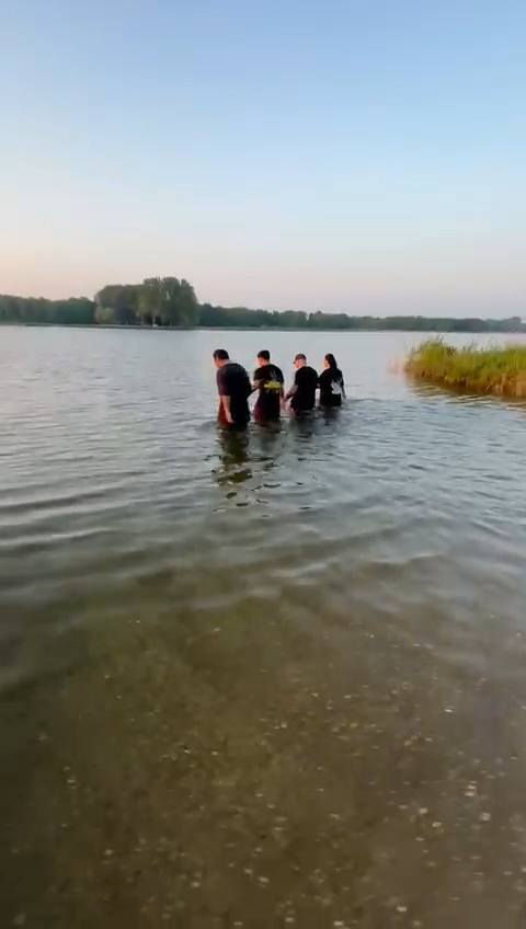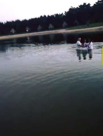Met zorg: we kijken goed of je helemaal onder water gaat – als symbool van het begraven van je oude leven en opstaan in nieuw leven.